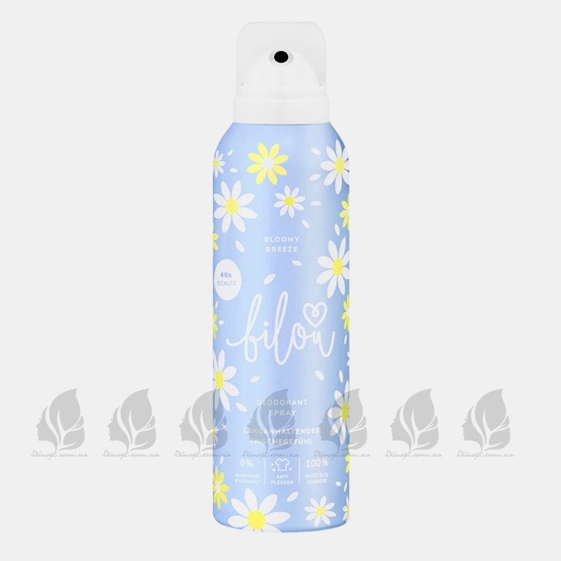 Дезодорант-спрей Bilou - незвичайне рішення від неприємного запаху! Його аромат поєднує в собі пудрову свіжість і ніжність квітів з чудовими нотами тонка і бобів. Формула дезодоранту абсолютно безпечна для шкіри, оскільки збагачена натуральними рослинними оліями та екстрактами. Арганова олія зміцнює шкіру, підвищуючи її природний захист, а соняшникова олія багата вітаміном Е, який бореться з вільними радикалами. Екстракт алое віра пом'якшує і дезінфікує шкіру, сприяючи загоєнню дрібних пошкоджень.