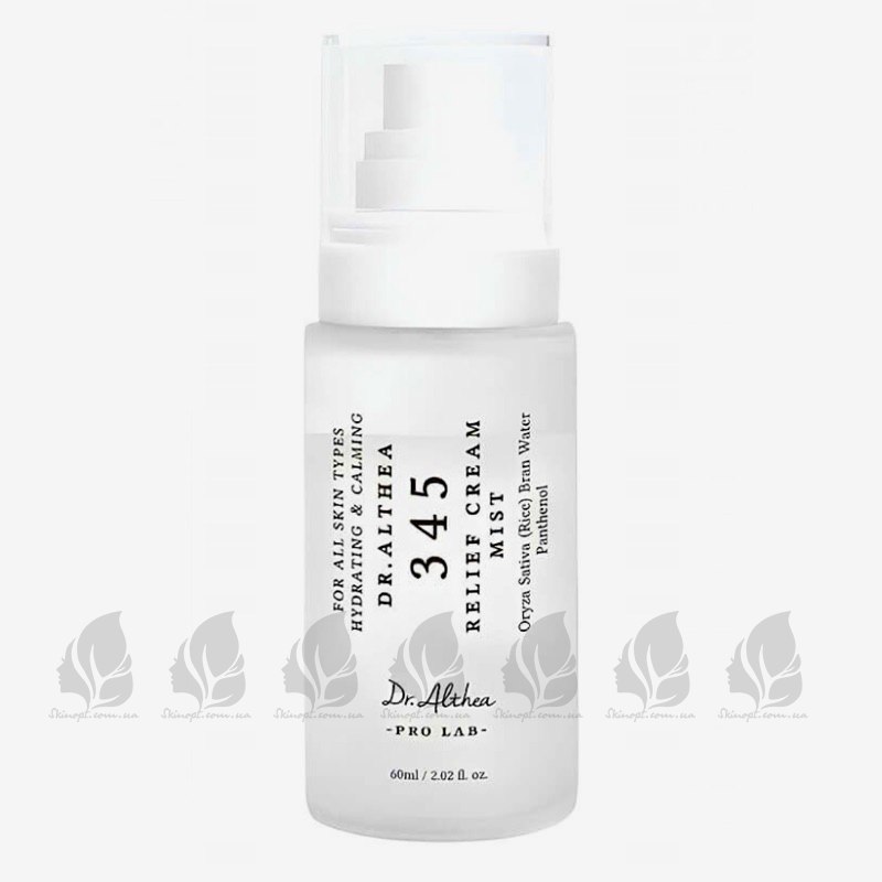 Крем-спрей для обличчя Dr.Althea 345 Relief Cream Mist поєднує в собі властивості зволожуючого тоніка і легкого крему. Ніжна текстура емульсії легко наноситься, зволожує, заспокоює і зменшує почервоніння. зволожує, запобігає лущенню та зневоднюванню, підвищує пружність шкіри та сприяє освітленню тонусу обличчя. шкіра потребує додаткового догляду.