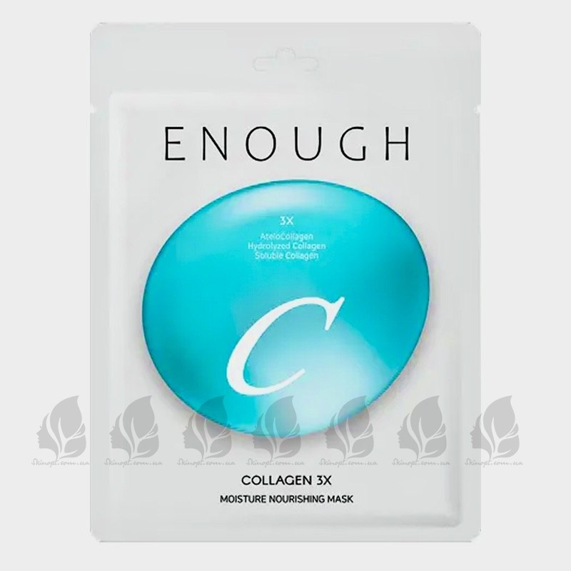 Collagen 3X Moisture Nourishing Mask від Enough містить колаген і призначена для швидкого догляду за шкірою. Засіб виготовлено на гіпоалергенній основі, яка щільно прилягає до шкіри, забезпечуючи активне проникнення біоактивних речовин і видимий результат вже через 15 хвилин.