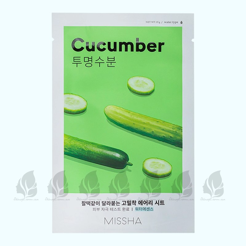 MISSHA Airy Fit Sheet Mask Cucumber – тканинна маска для сухої шкіри. Він містить екстракт огірка для зволоження шкіри, заспокійливий алантоїн і екстракт зеленого чаю з протизапальними властивостями.