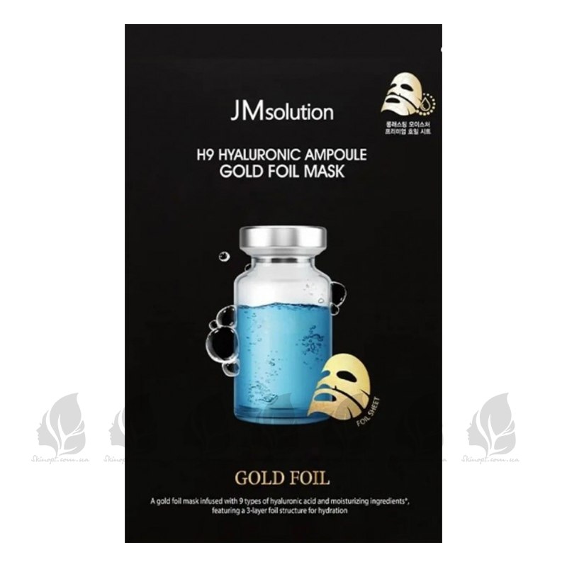 Тканинна маска зволожуюча з гіалуроновою кислотою H9 Hyaluronic Ampoule Gold Foil Mask, JMSOLUTION - 1 шт